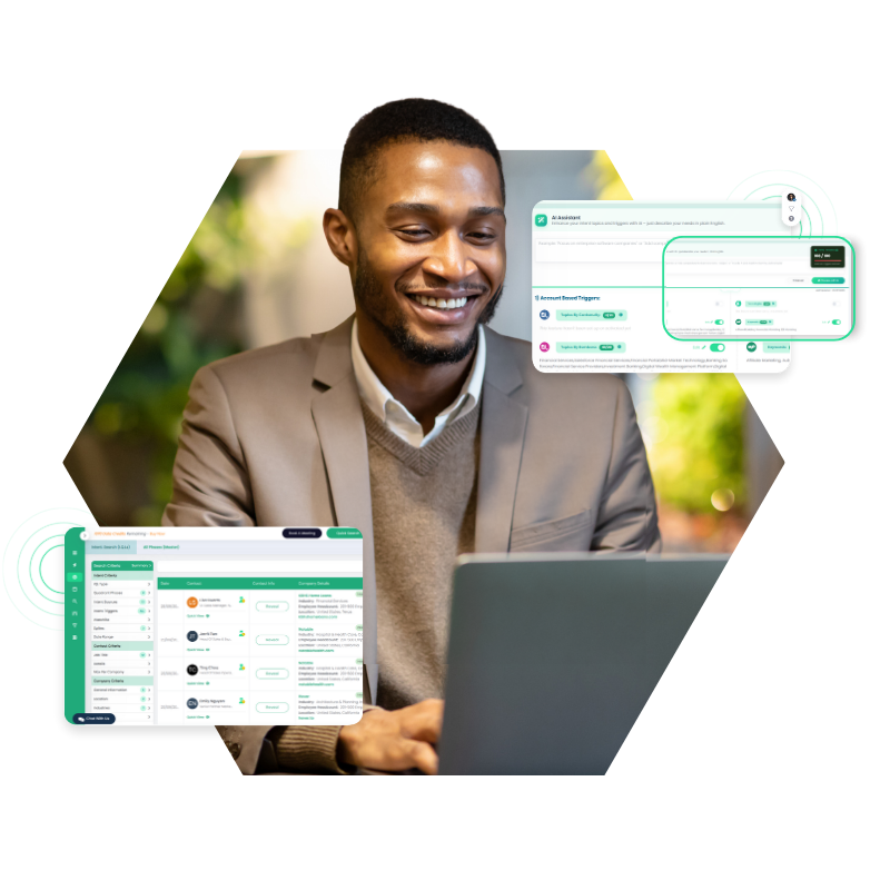 Build customised intent searches and reveal verified contact details instantly, turning intent signals into conversations that convert.
